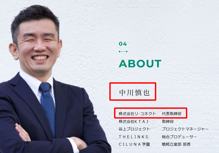 株式会社リ・コネクトの代表も、中川慎也さんです。